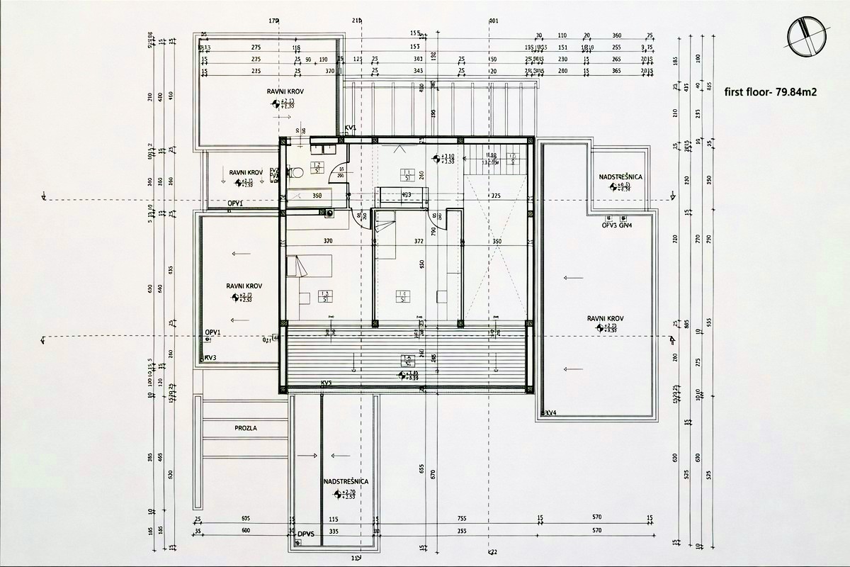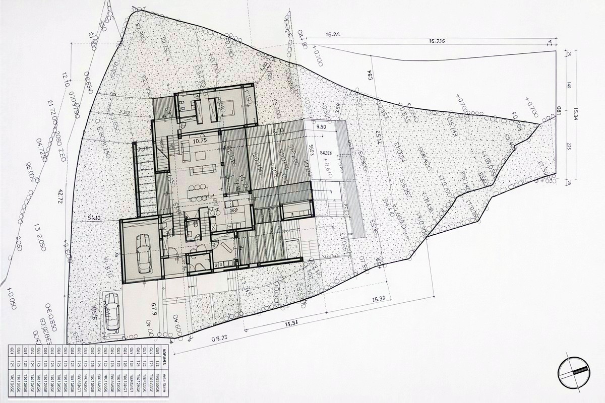 Dům se v současné době nachází ve fázi hrubé stavby, dosud byly nainstalovány hliníkové okna a dveře a provedeny rozvody. Tato fáze vám dává možnost navrhnout si interiér sami podle vlastních přání a potřeb – uspořádání pokojů, nábytek a další detaily, abyste si vytvořili dokonalý domov nebo luxusní útočiště.